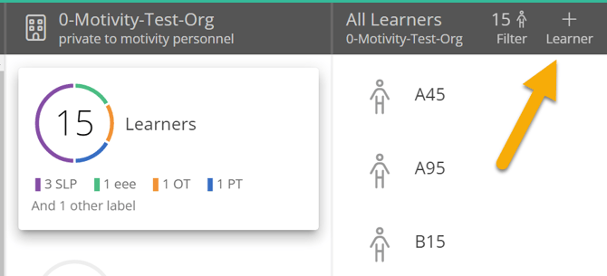 To add a learner, select "Learner" when you are on your organization's home screen. Then click on the + Learner in the upper right corner of the screen. -png.png?width=670&height=306&name=mceclip0%20(41)-png.png)