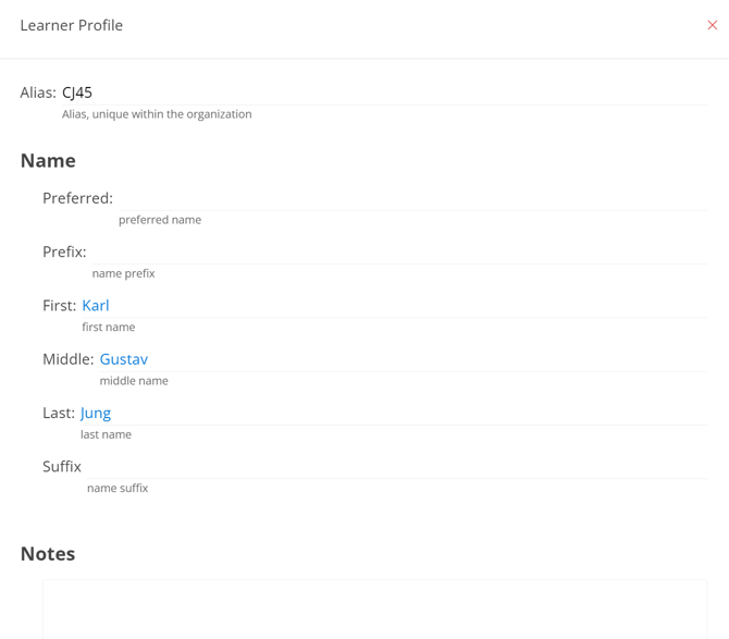 The Alias will be displayed in the learner list and can be used to protect PHI. It should be a unique code but should not include any identifiable information about the learner.