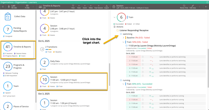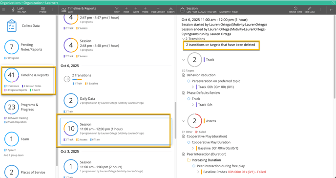 If a target was transitioned during a session and then later deleted from the program, you’ll see an indicator in that session: