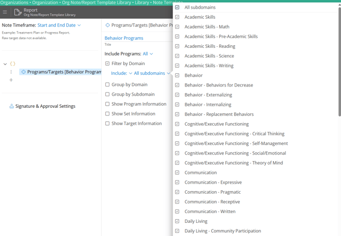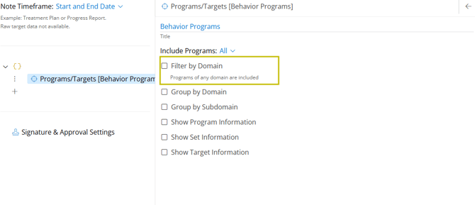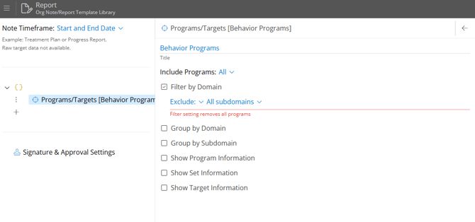 Domain Filtering, you can automatically include or exclude programs of specific domains within your reports. This ensures your clinical reports only contain data relevant to your needs and preferences, saving time and reducing manual administrative work.