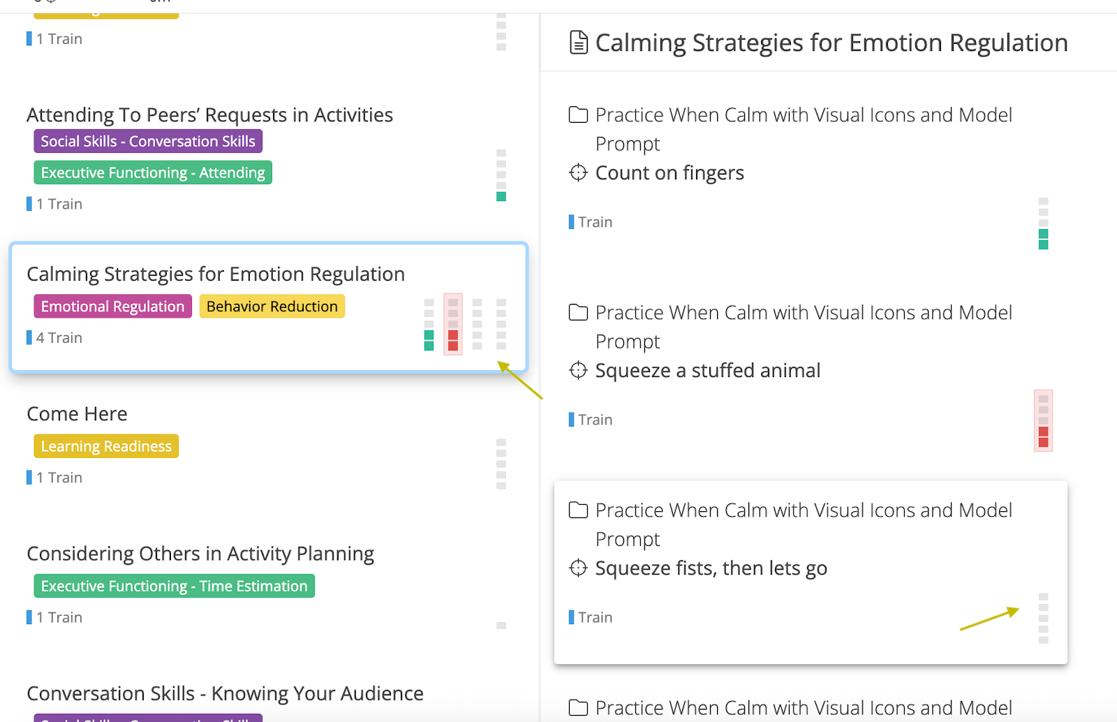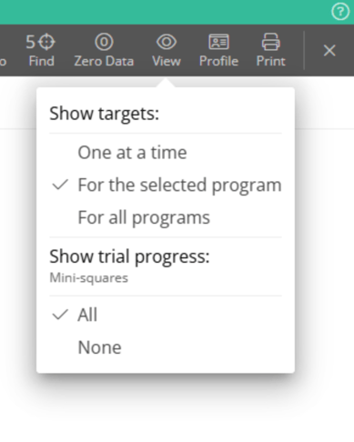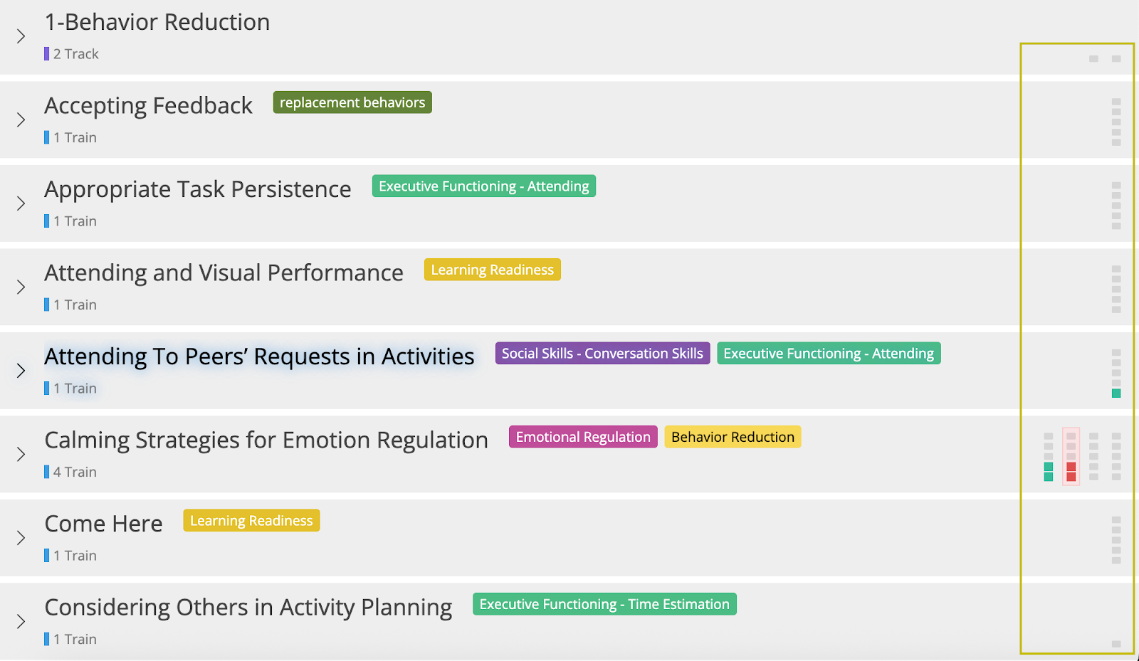 The "mini-squares" a staff sees during their session is a visual tool designed to give them a clear look at their progress at a glance. Data collectors can now see what the suggested trials are at any point during the session with added flexibility to control their views.