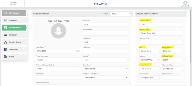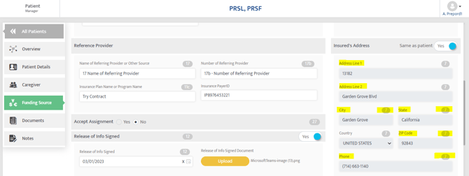 How to Fix: Navigate to Patient > Funding Source > Funding Profile > Insured’s Address.