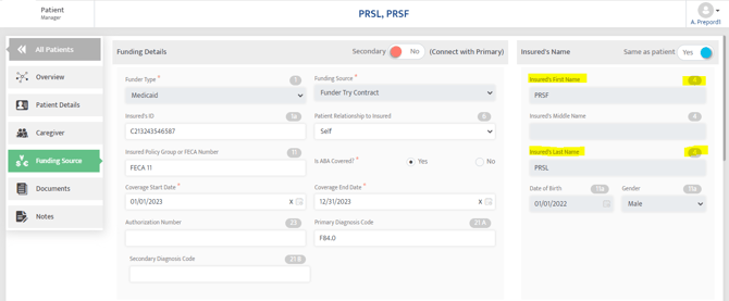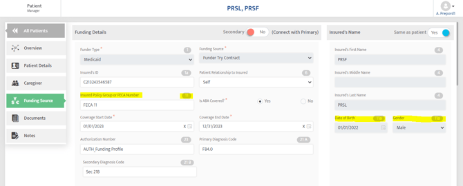 How to Fix: Navigate to Patient > Funding Source > Funding Profile > Insured's First Name, Last Name.