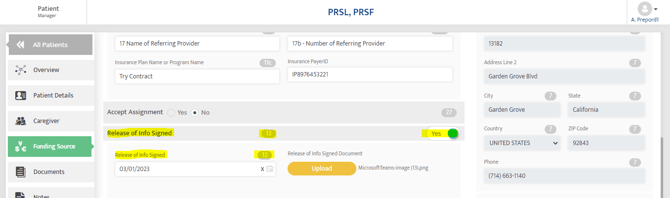 How to Fix: Navigate to Patient > Funding Source > Funding Profile > Release of Info Signed.