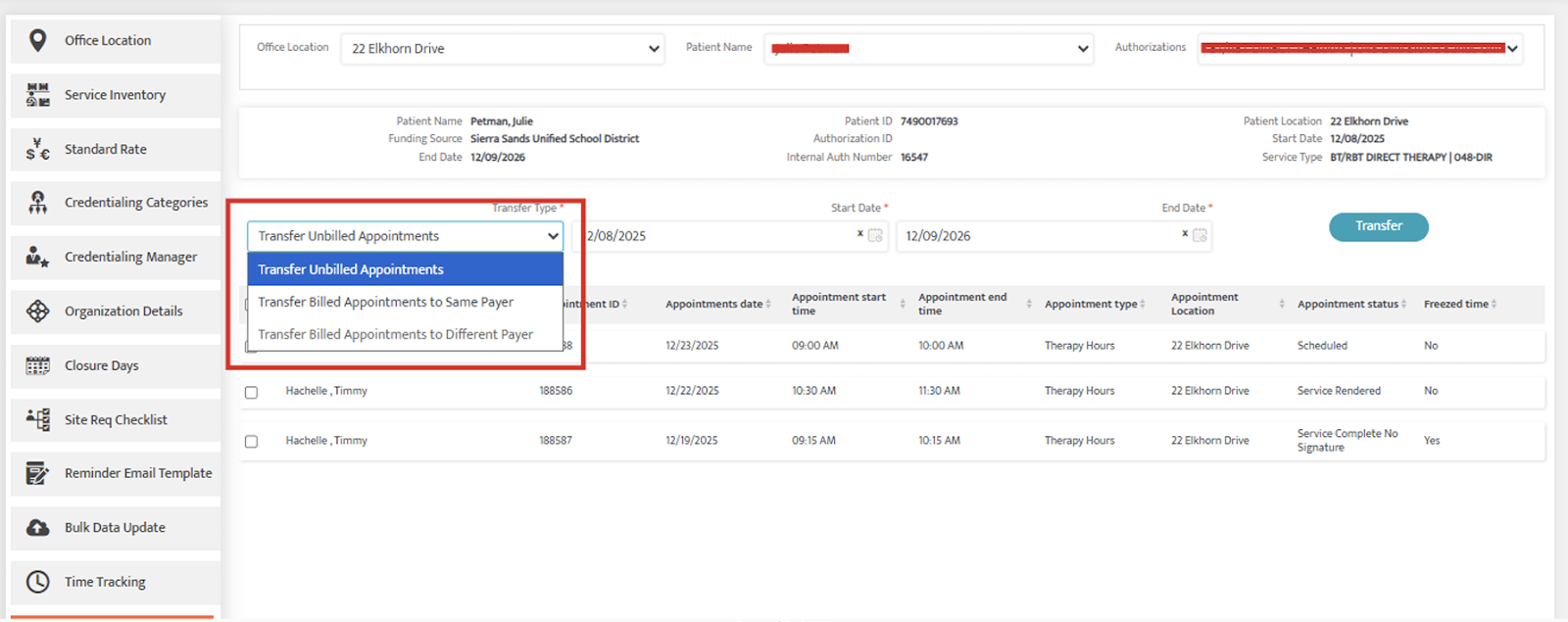 Bulk Transfer of Billed Appointments After an Authorization Change
