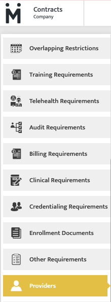 Providers (under Contracts Module) You will see a list of all the providers in your organization here who should be enrolled (credentialing requirement) with this payor (based on the location where they provide services from.
