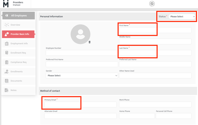 You have to fill at least the mandatory fields on the ‘Provider Basic Info’ page to create a new provider, as indicated by a red asterisk.