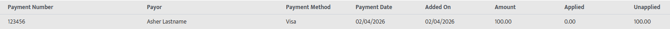 - Payment will initially show as fully unapplied