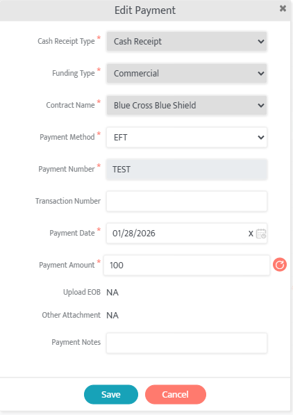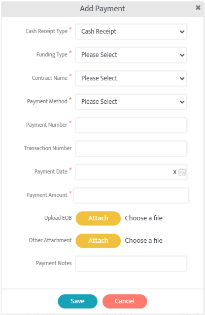 - Cash Receipt Type (Recommended: Cash Receipt. Selecting EDI will prompt an upload of the text file of the EDI)