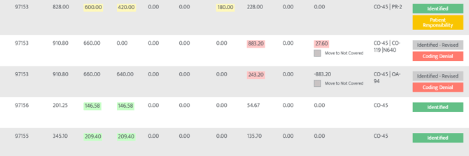- Red → Contractual obligation, denial, or non-covered amount