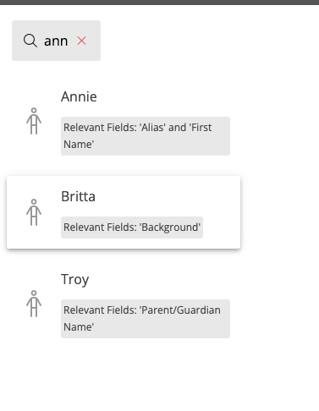 - For example, if you search for "Annie", a learner that matched to the first name within the profile would be ranked higher than a learner that matched to the mother's name in the profile.