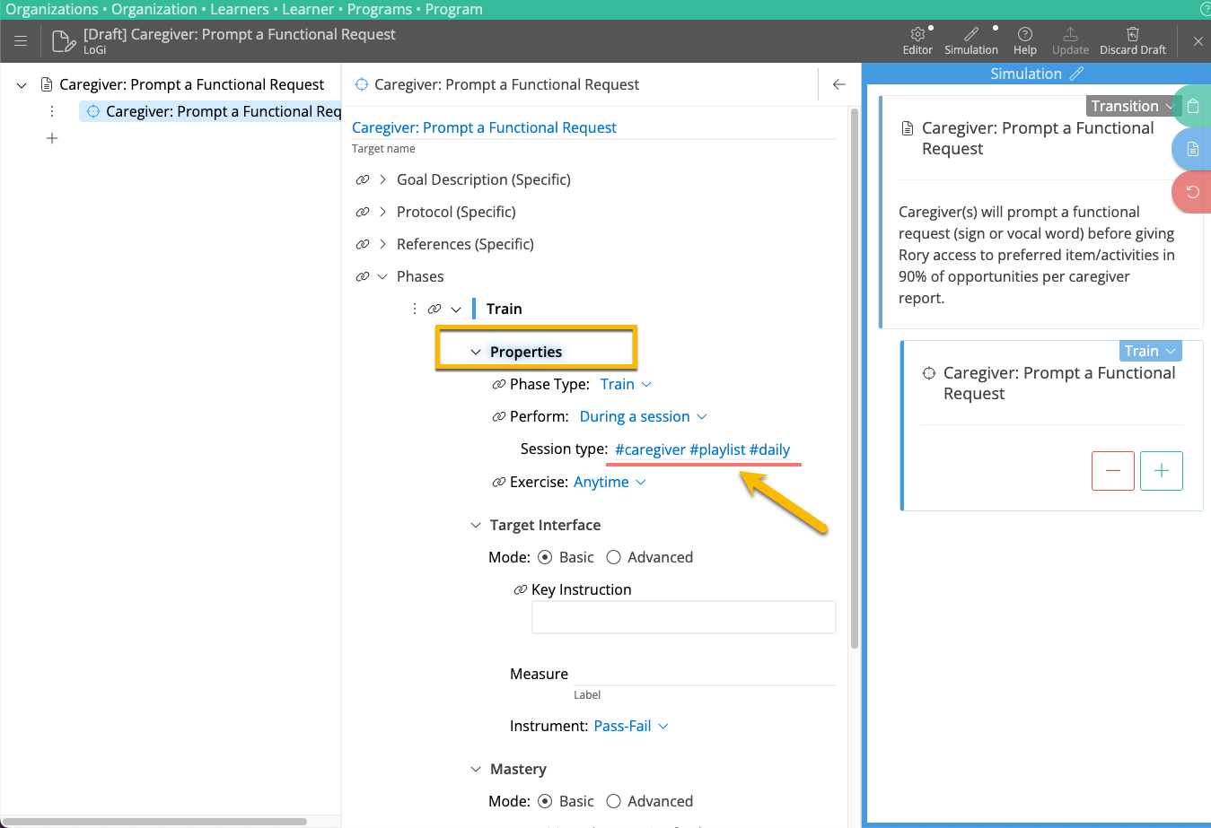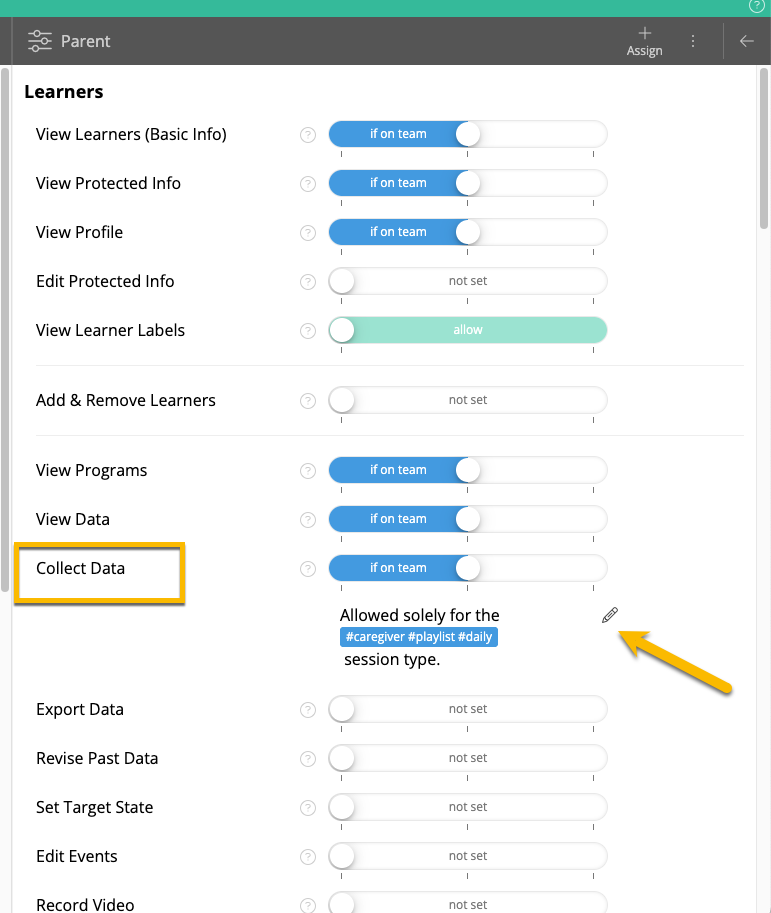 For example, you might create a caregiver playlist so that only caregivers can collect data on certain parent training goals—and those targets are hidden from RBTs.